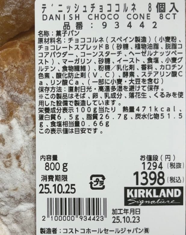 コストコの「デニッシュチョココルネ」は 8個入りで税込1,398円。
