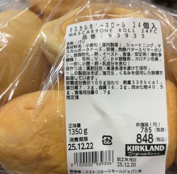 | 項目 | ディナーロール | マスカルポーネロール |